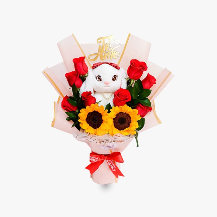 Ramo x 8 Rosas + 2 Girasoles + Peluche.